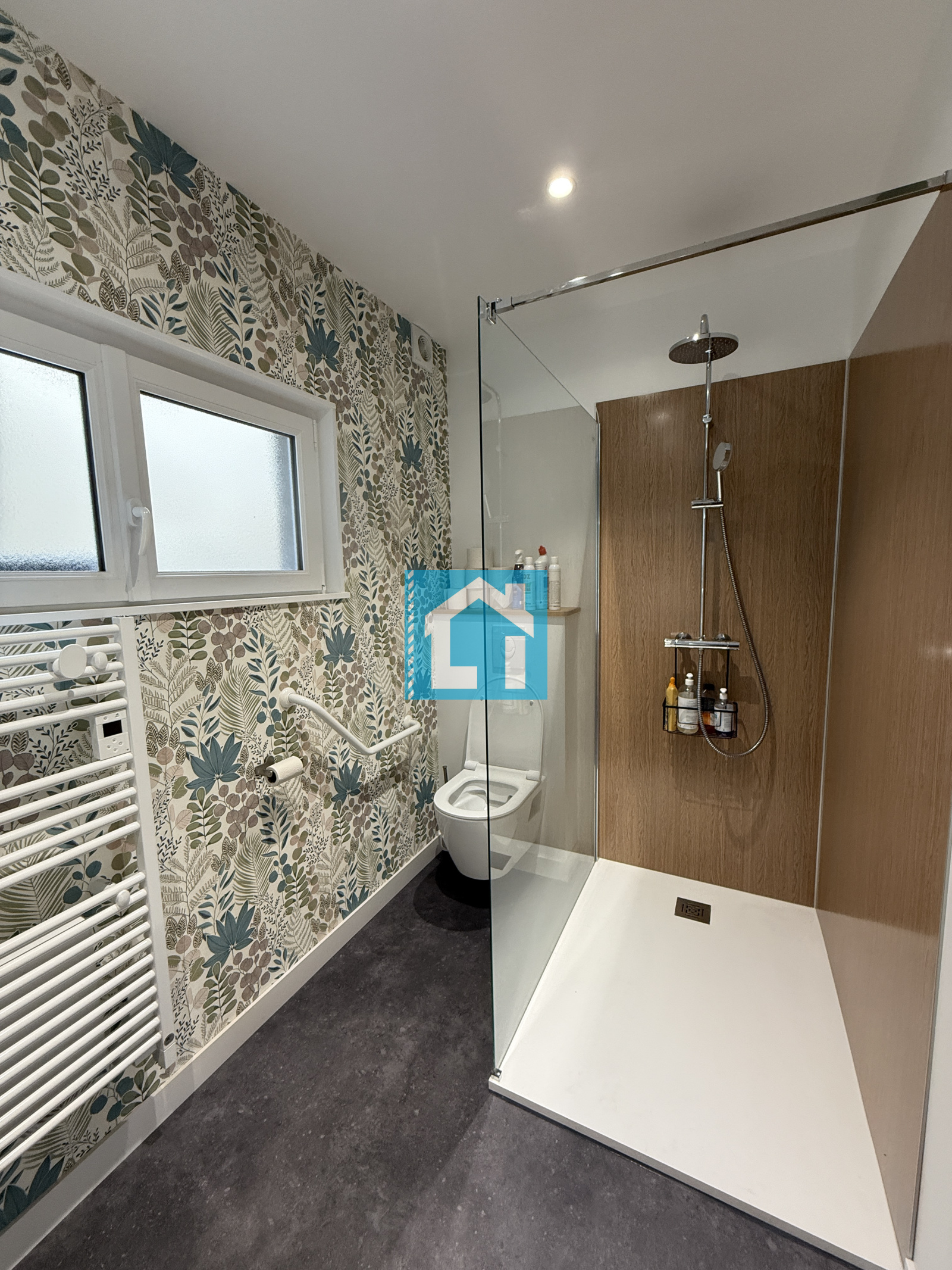 Assainissement tout-à-l'égout, chauffage par pompe à chaleur, fenêtres PVC double vitrage, raccordé à la fibre optique.