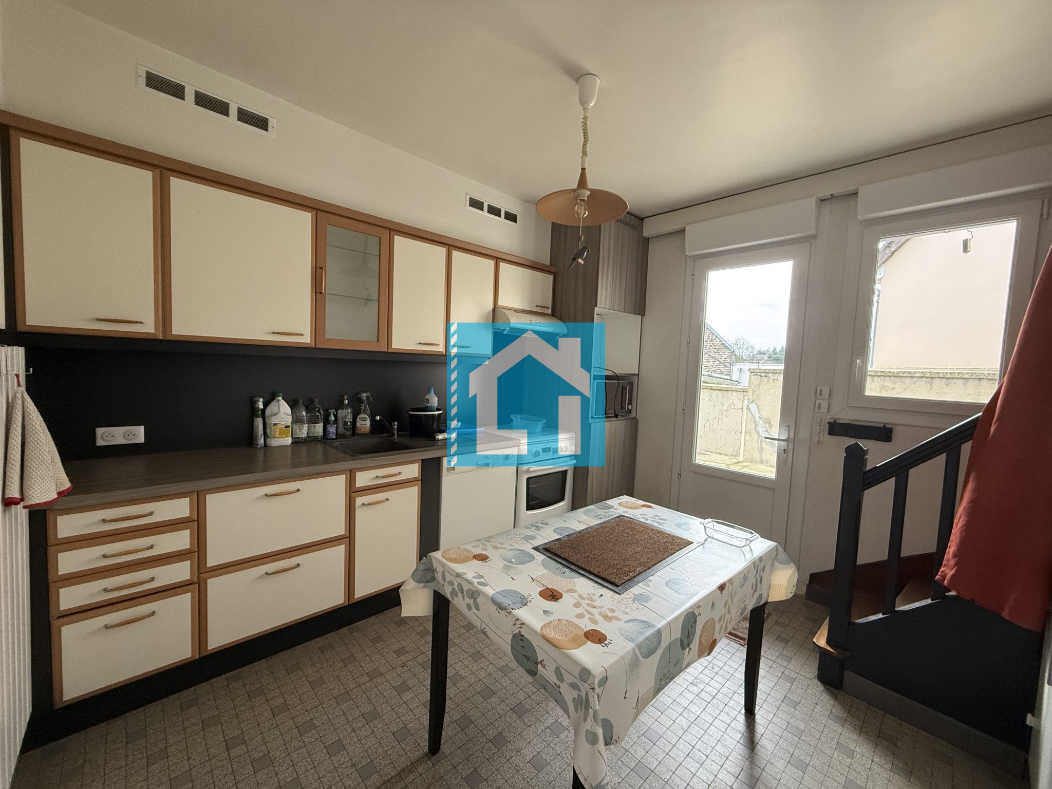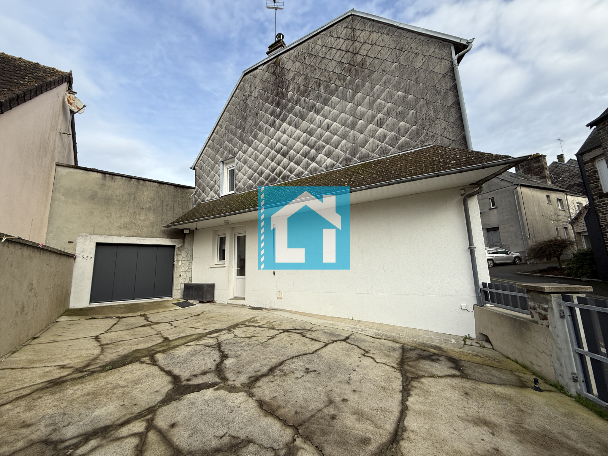 À l'extérieur, cour et garage de 50 m², terrasse à l'arrière.