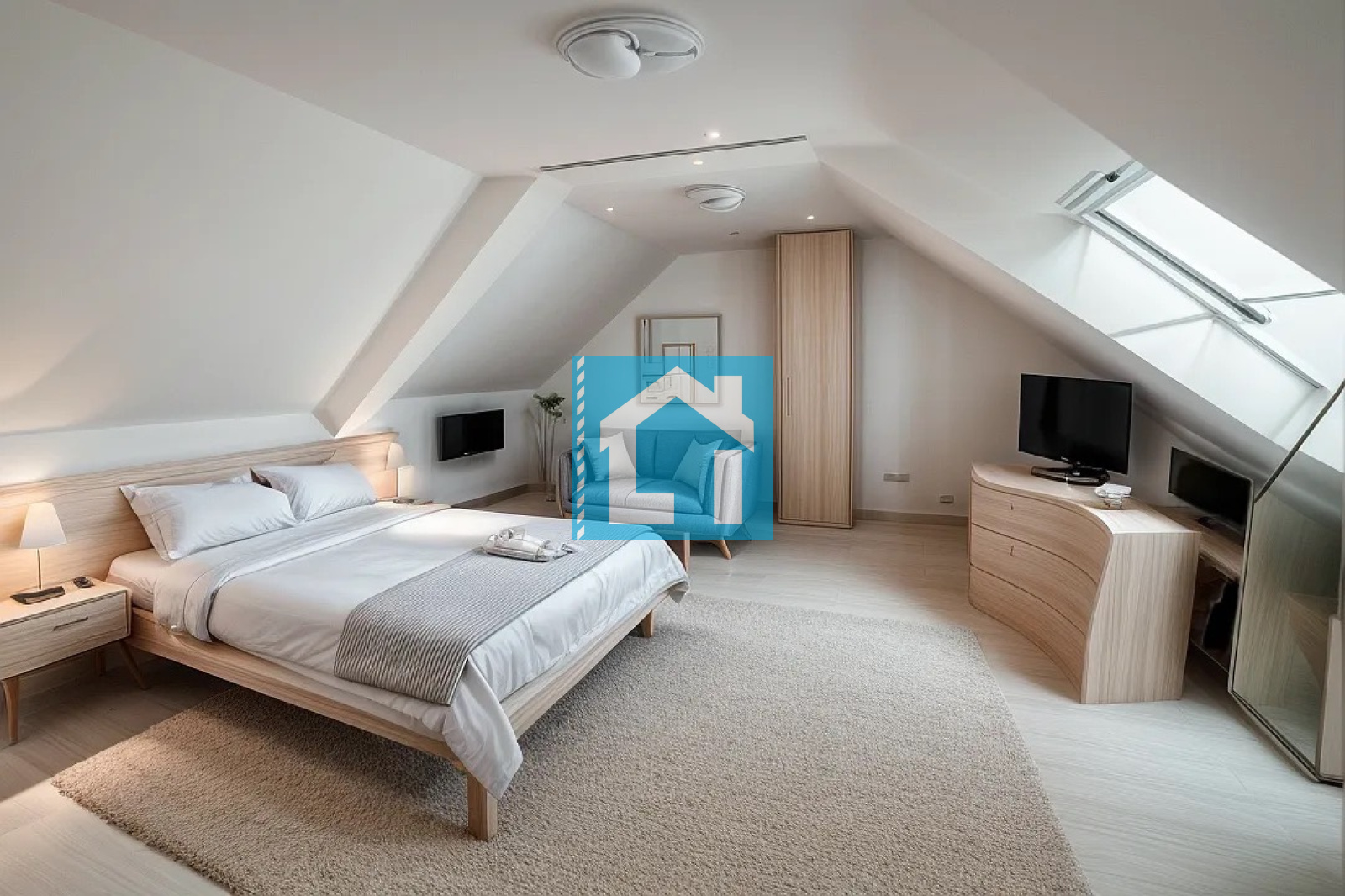 Le premier étage dessert une chambre et un bureau.