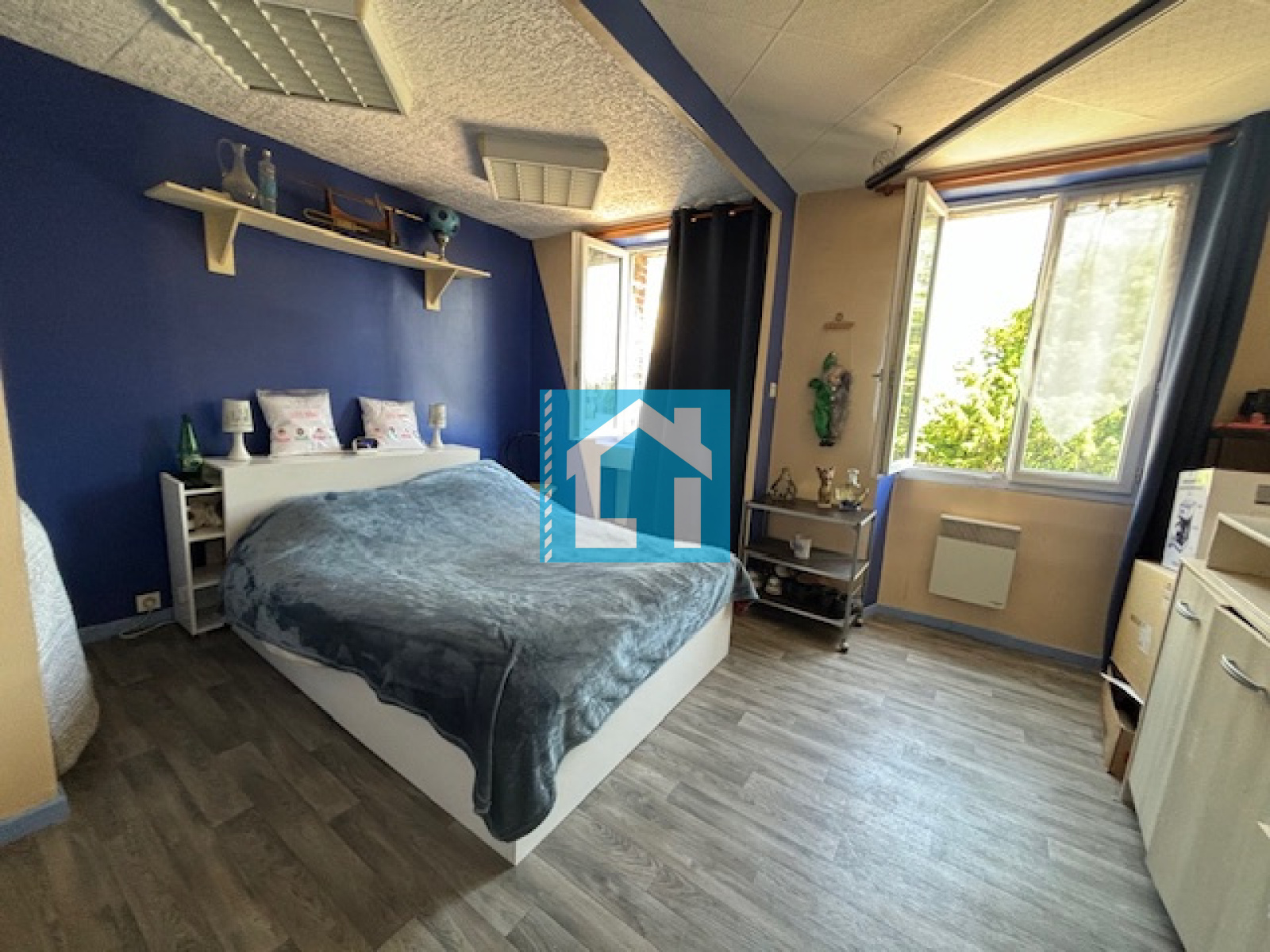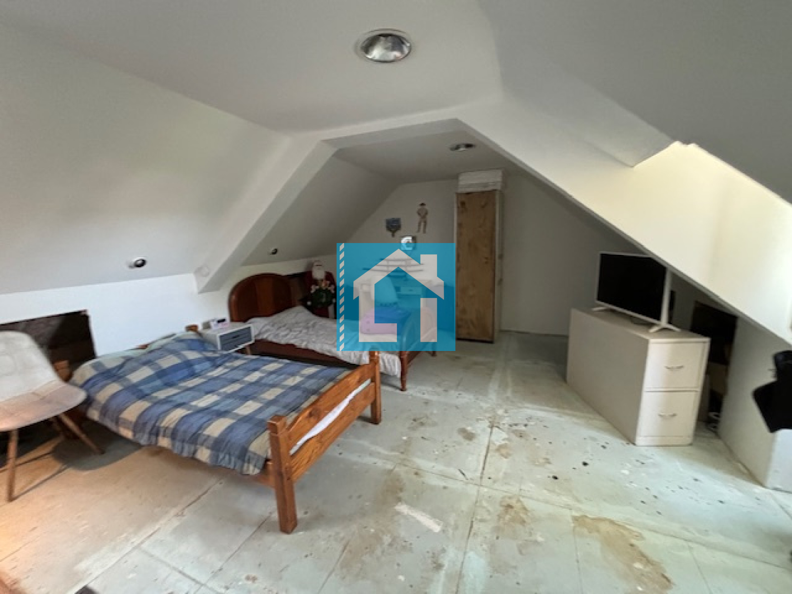Le second étage abrite une spacieuse chambre à rénover, idéale pour créer une suite ou un espace indépendant.