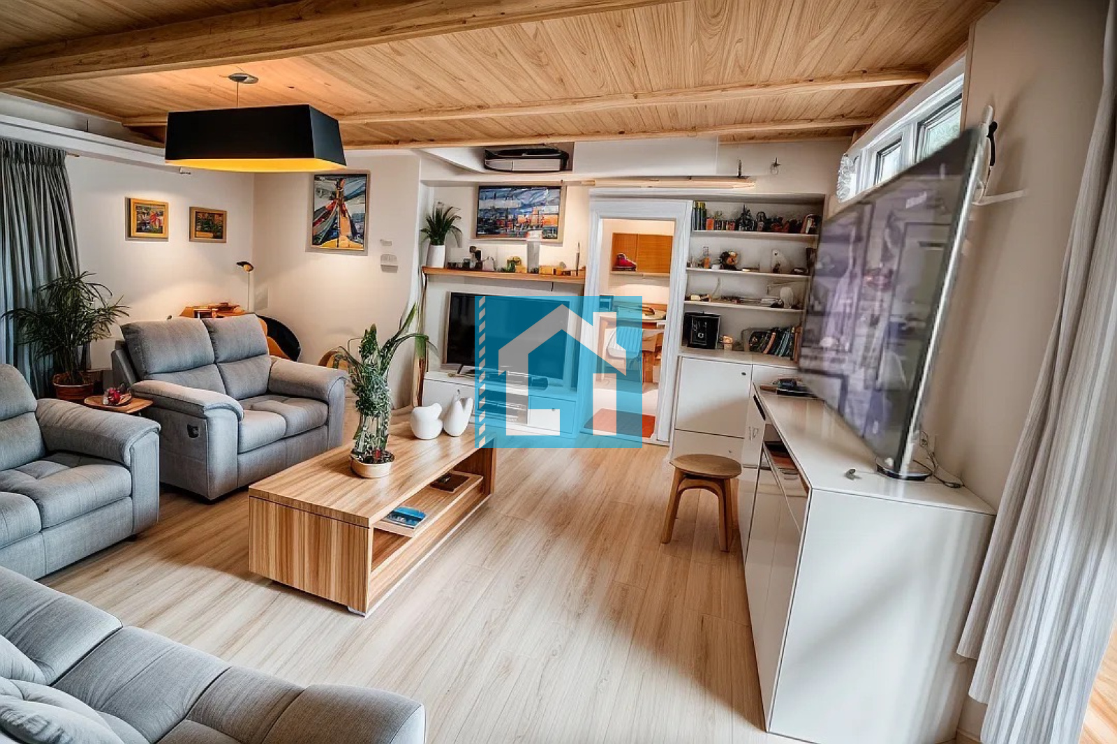 Au rez-de-chaussée, vous trouverez une chaleureuse salle à manger avec cheminée, une cuisine équipée, un salon pouvant être transformé en chambre, ainsi qu’une salle d’eau avec WC.