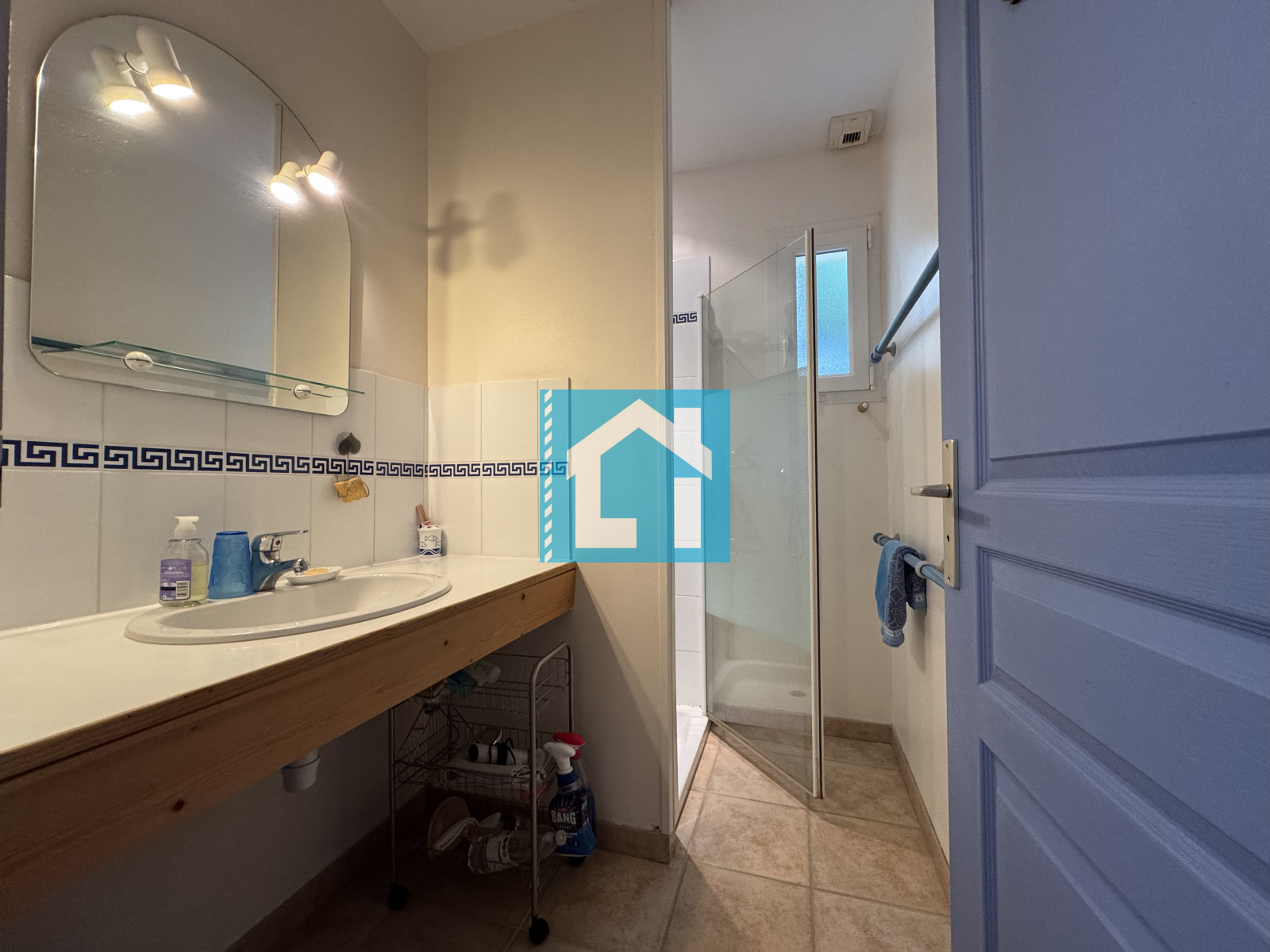 -Au rez-de-chaussée : Un séjour-salon, une cuisine ouverte aménagée, une arrière cuisine, un couloir desservant une chambre, une salle d'eau et un WC.