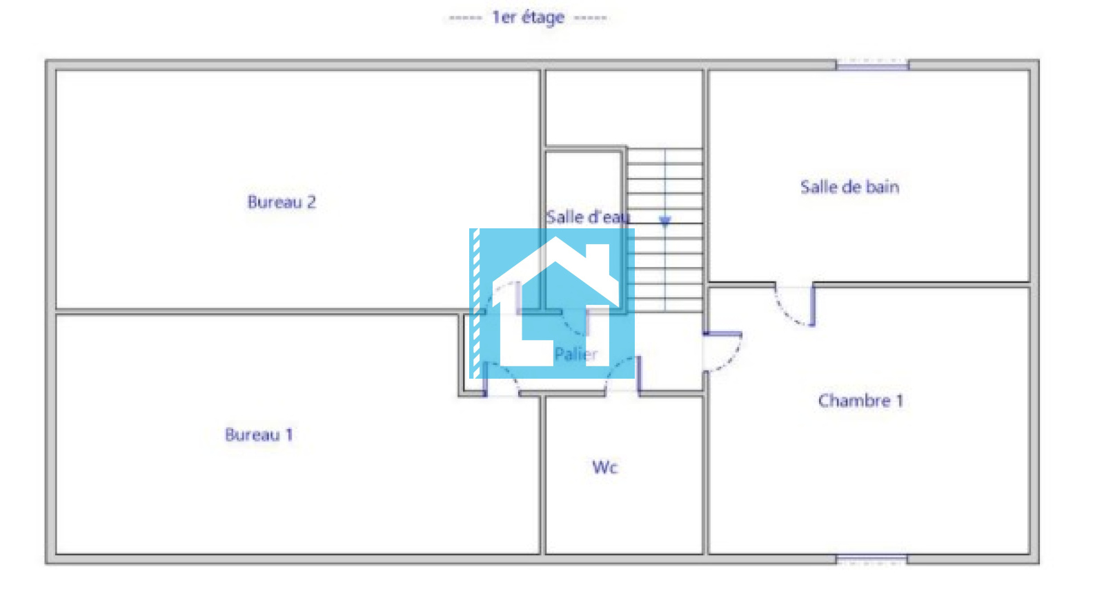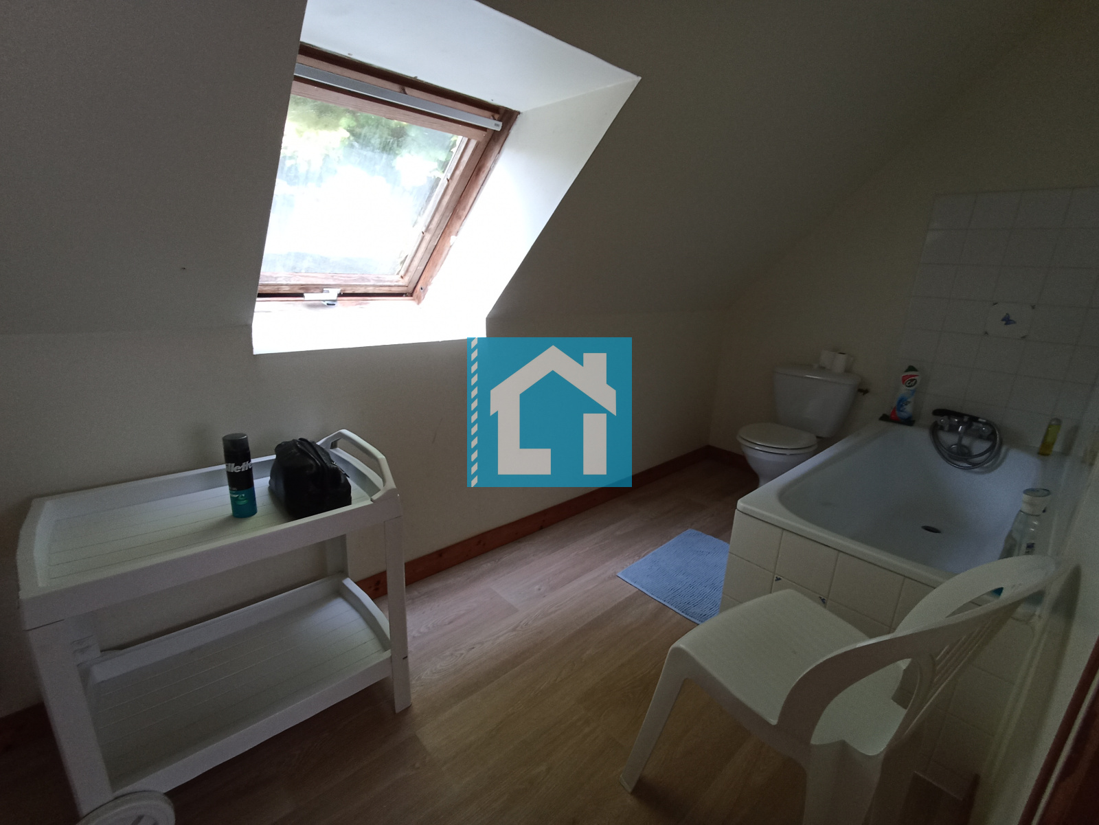 - Au 1er étage : 1 chambre avec salle de bain, 2 pièces aménagées en chambres (moins de 9m²), une salle d’eau (douche uniquement) et WC