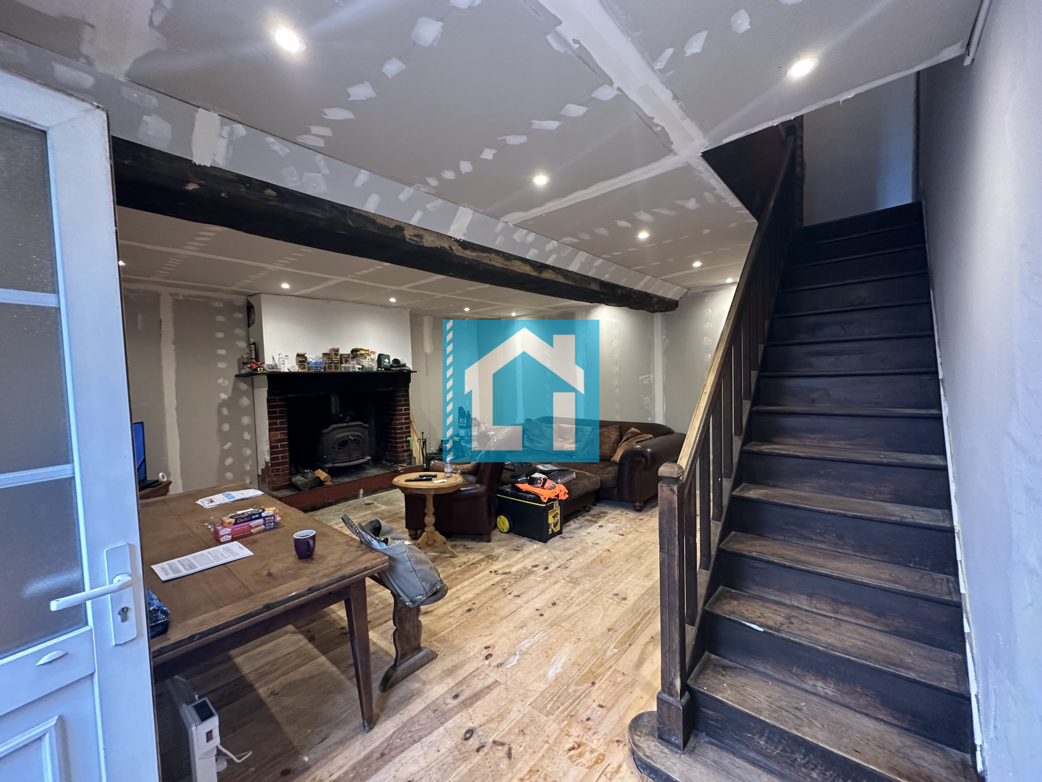 - Au rez-de-chaussée : d'un séjour avec cheminée, une cuisine et un WC,