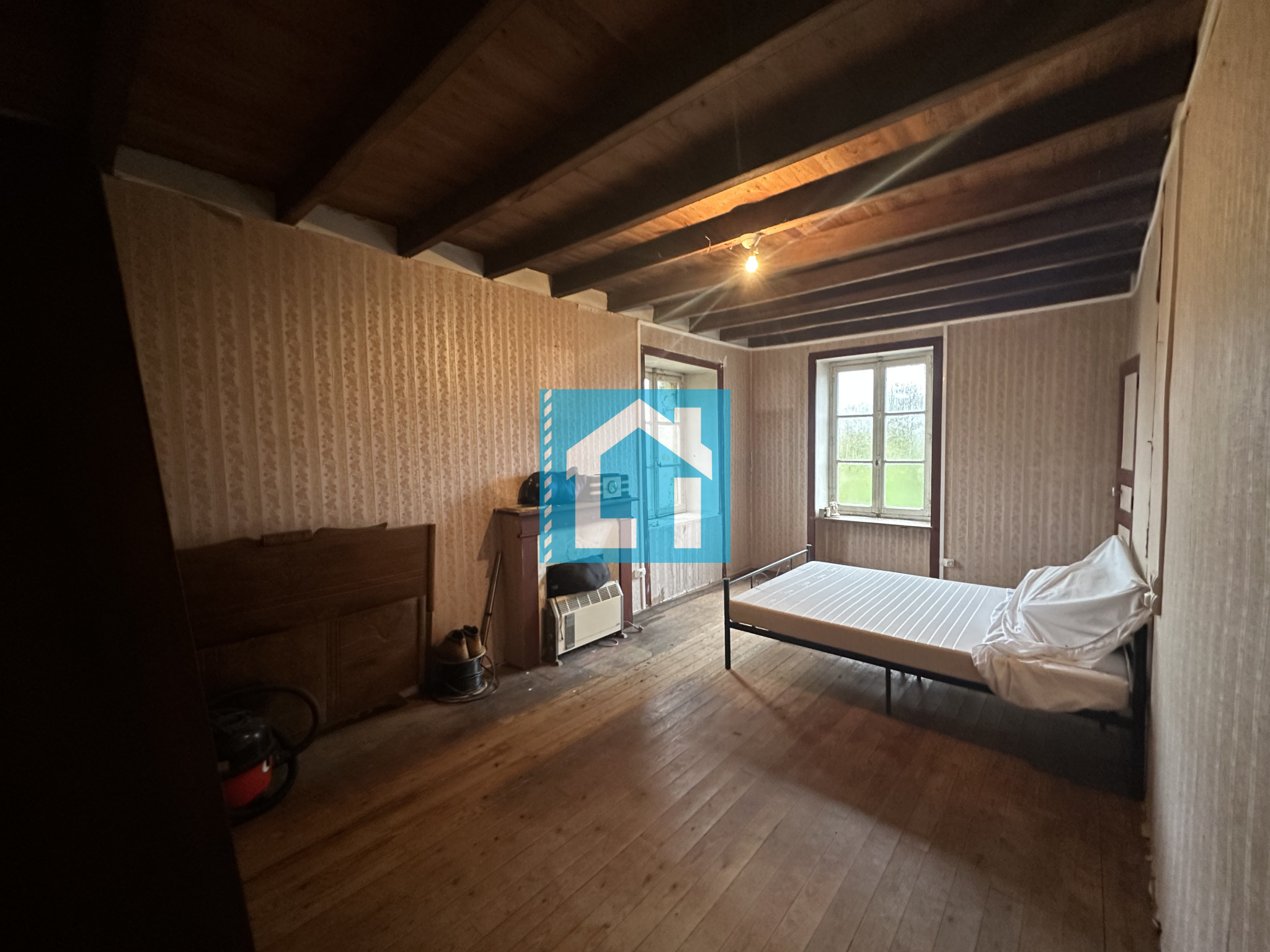 - À l'étage : un palier desservant deux grandes chambres (environ 17 et 19 m²) ainsi qu'une salle d'eau avec WC,