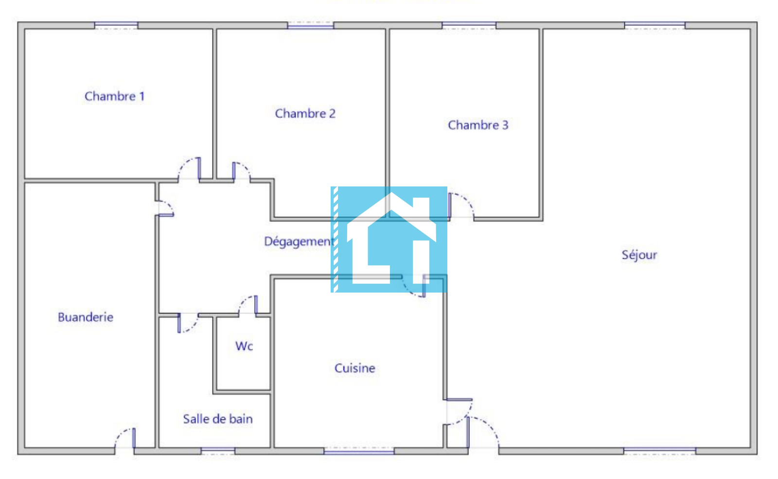Il se compose d'une pièce de vie de 34 m² donnant accès à une terrasse avec barbecue, une cuisine avec insert bois, 3 chambres, une salle d'eau, un WC séparé et une arrière cuisine. Le tout sur un vide sanitaire avec une partie en cave.