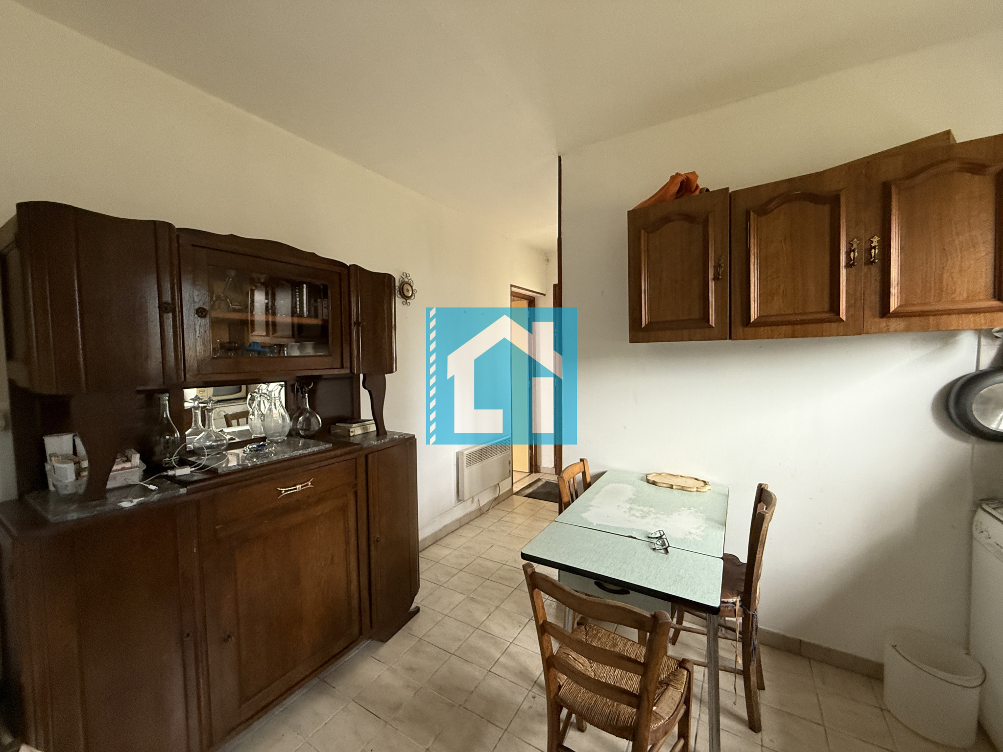- Au rez-de-chaussée, d'une entrée, un séjour avec insert, une cuisine, une chambre, une salle d'eau et un WC séparé,