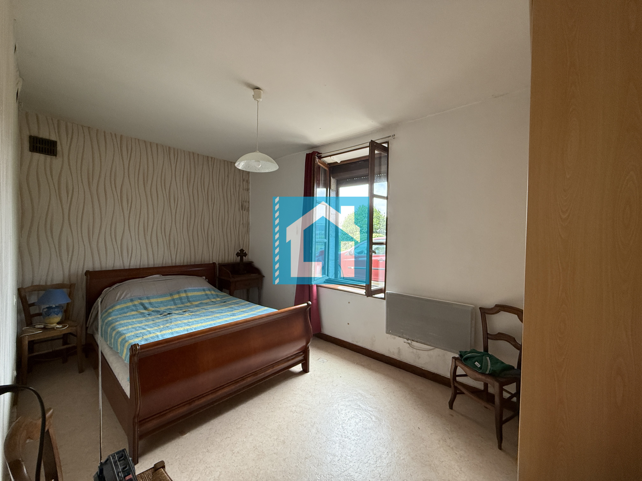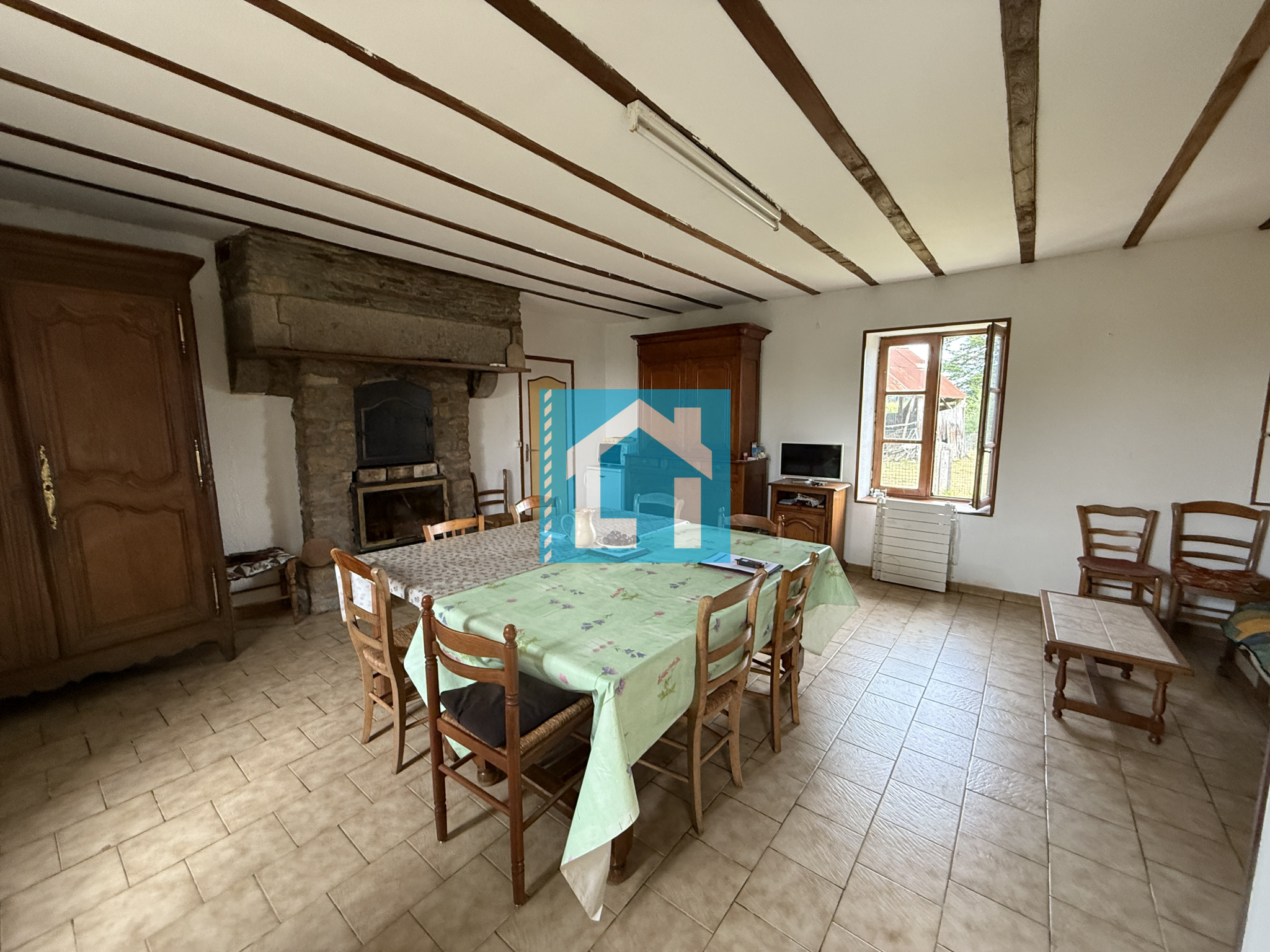 Fenêtres bois double vitrage. Chauffage électrique couplé à l'insert bois. Assainissement à mettre aux normes.