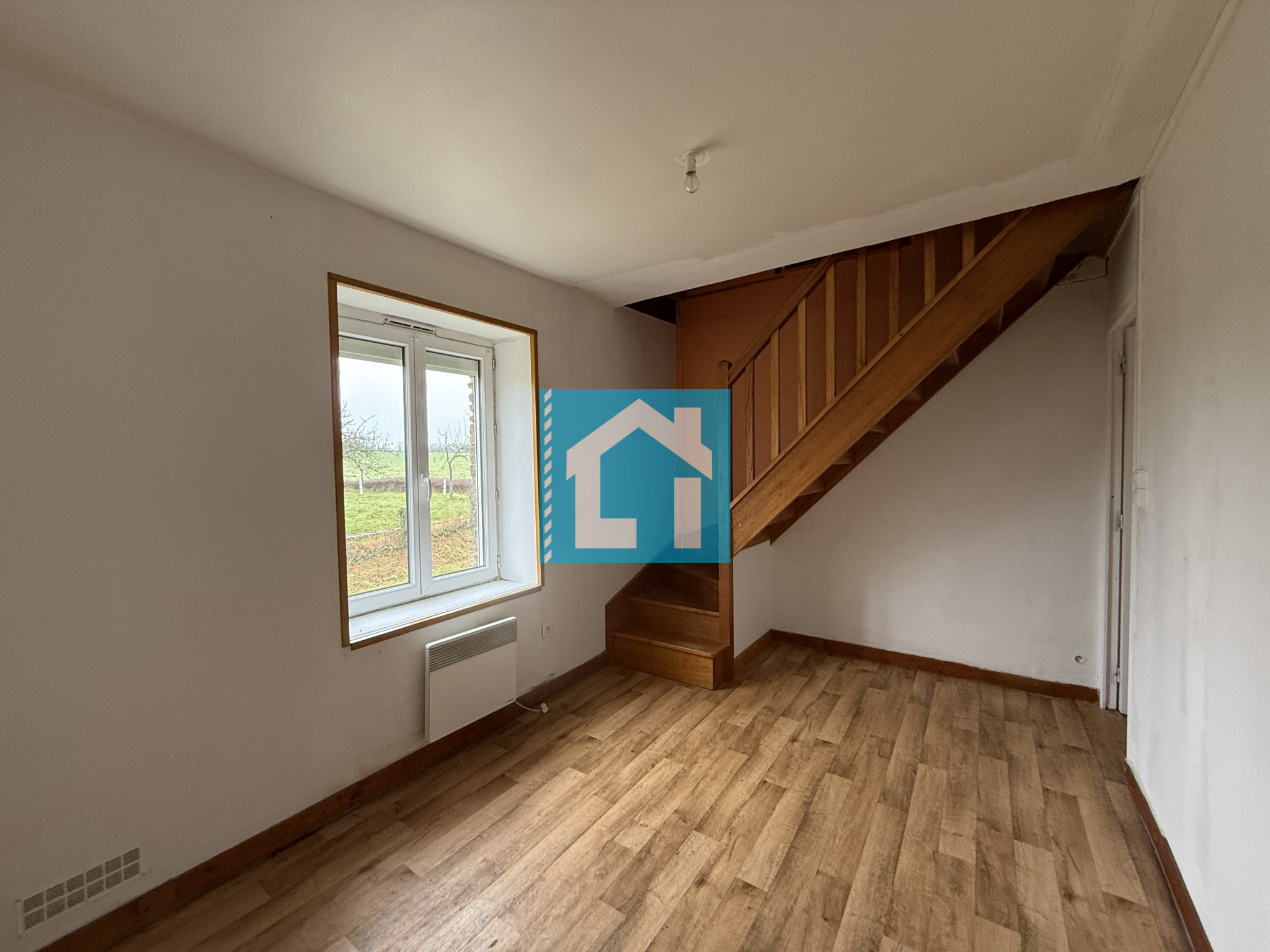 - Au rez-de-chaussée : d'une cuisine, un séjour avec cheminée, deux chambres dont une traversante, salle d'eau et WC,