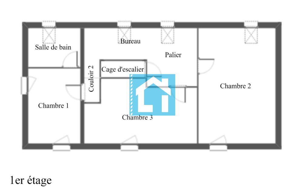 - À l'étage : un palier desservant 3 chambres dont une avec salle de bain attenante.
