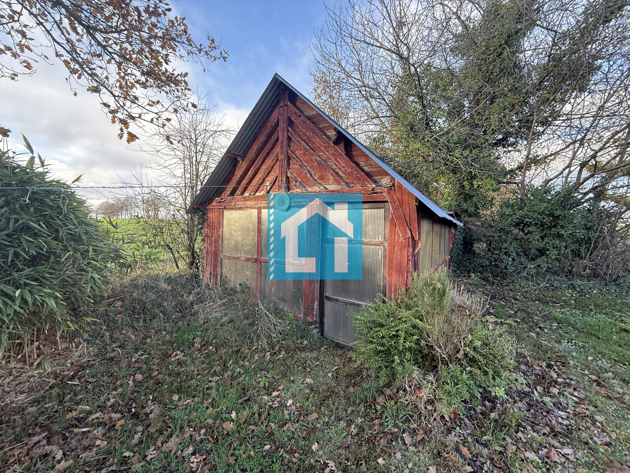 À l'extérieur, un terrain clos et arboré de 1 940 m² avec abri à bois, abri de jardin, dépendance, puits.