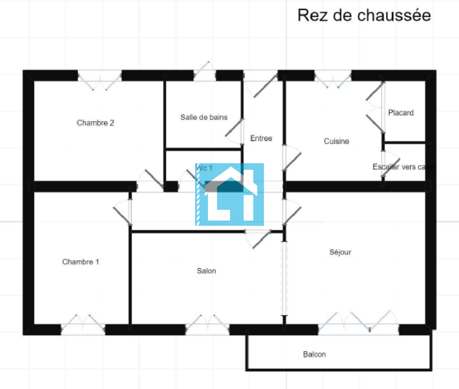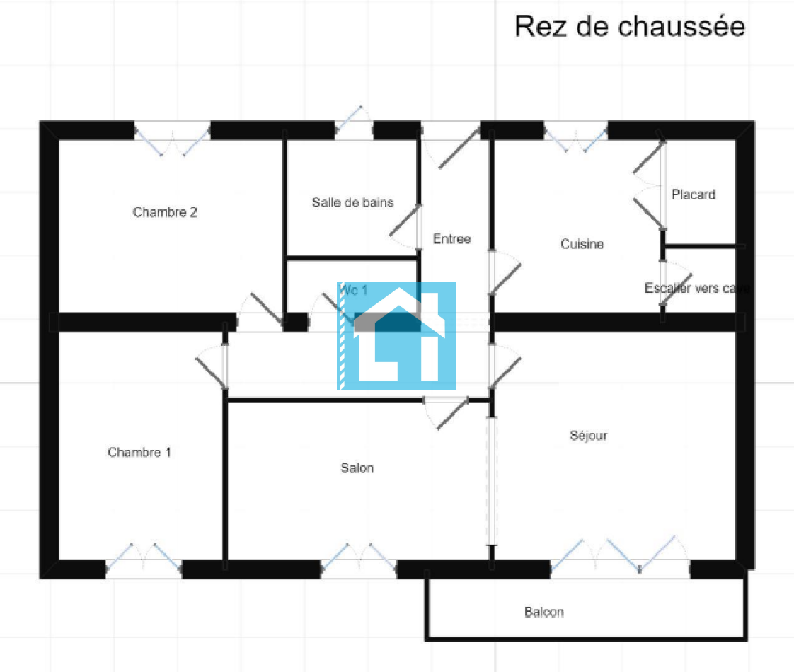 - Au rez-de-chaussée surélevé : une entrée et un couloir desservant une cuisine, une salle à manger avec balcon ouverte sur un séjour, deux chambres, une salle d'eau et un WC séparé.