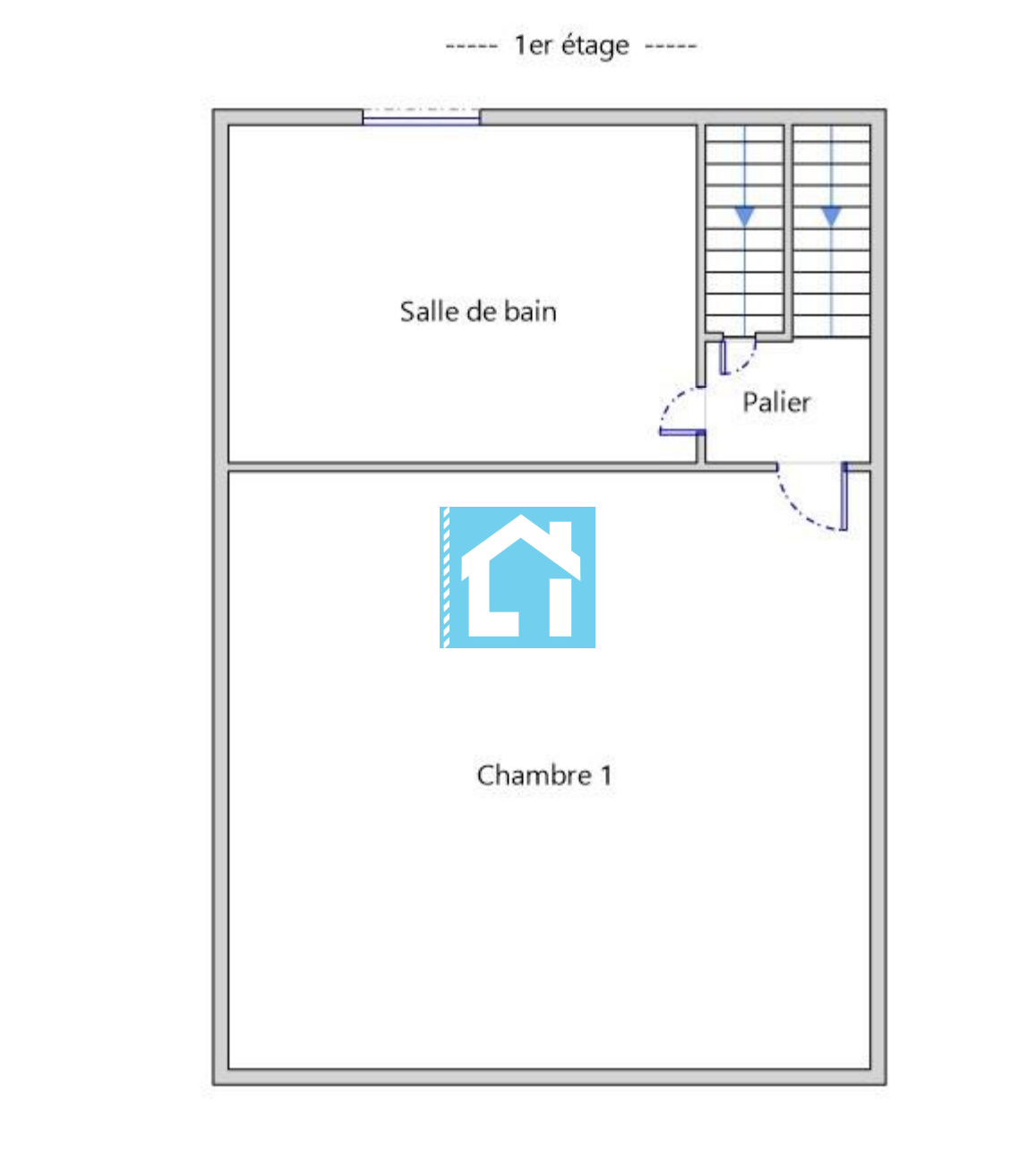 A l'étage : un palier desservant une chambre et une salle de bains.