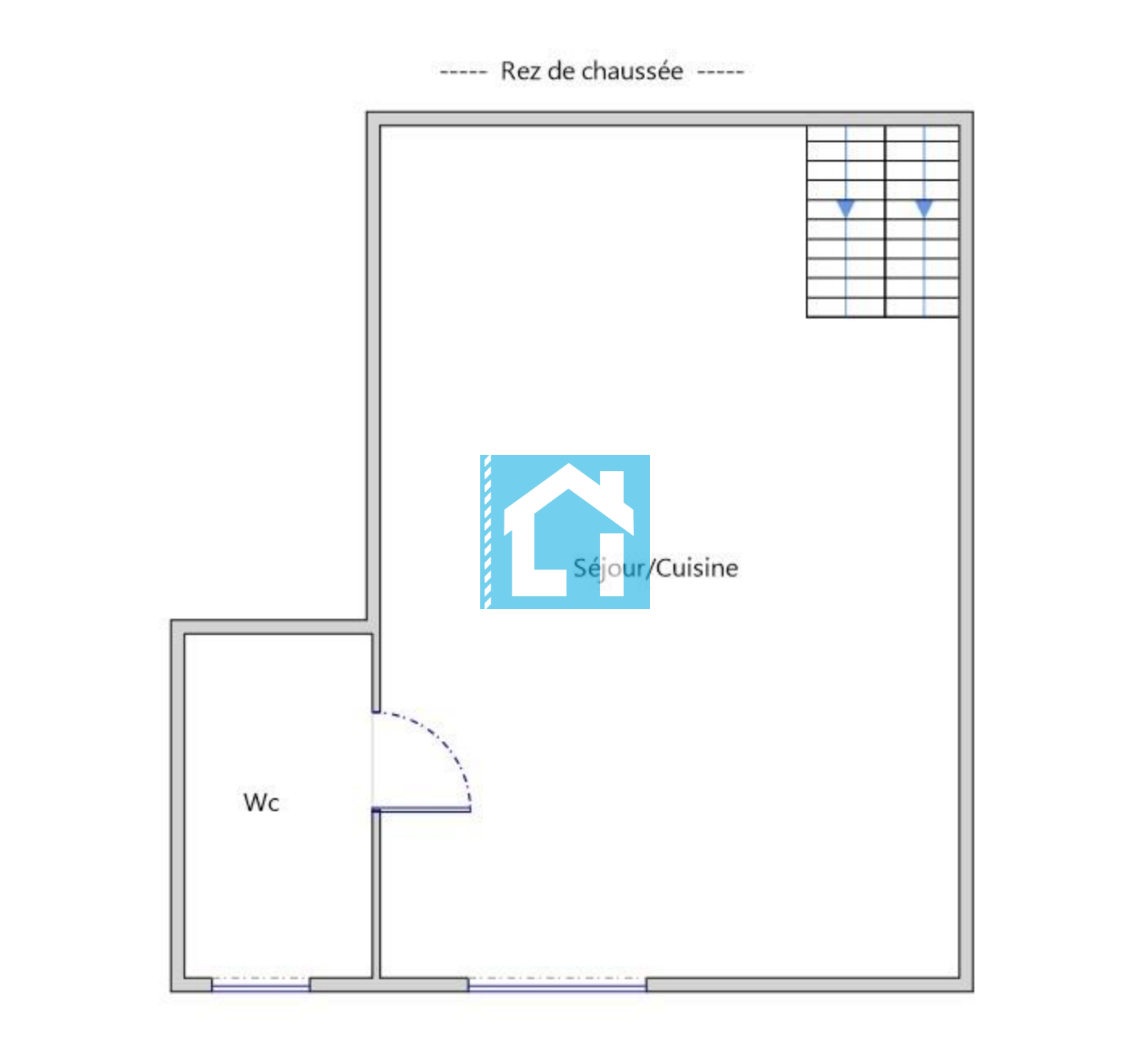 Au rez de chaussée : un salon/séjour de 19m² avec cuisine amenagée et un wc indépendant.