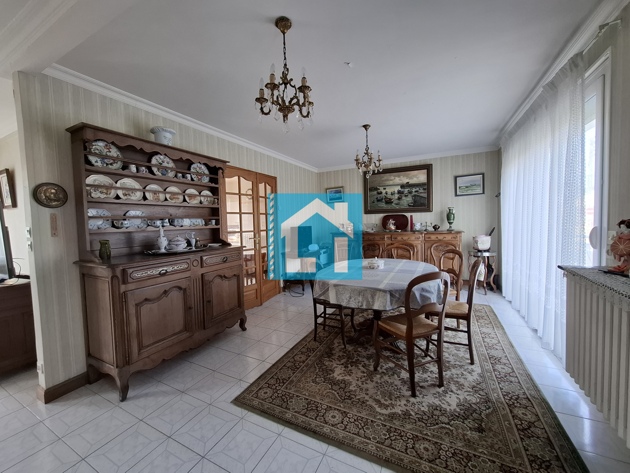 A l'étage, une entrée, un salon, une salle à manger, une cuisine séparée équipée, deux chambres, une salle d'eau avec wc, un wc indépendant avec lave mains.
