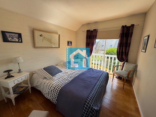 A l'étage : un palier desservant 3 chambres belles chambres lumineuses dont une son sauna privatif et une salle d'eau avec WC.