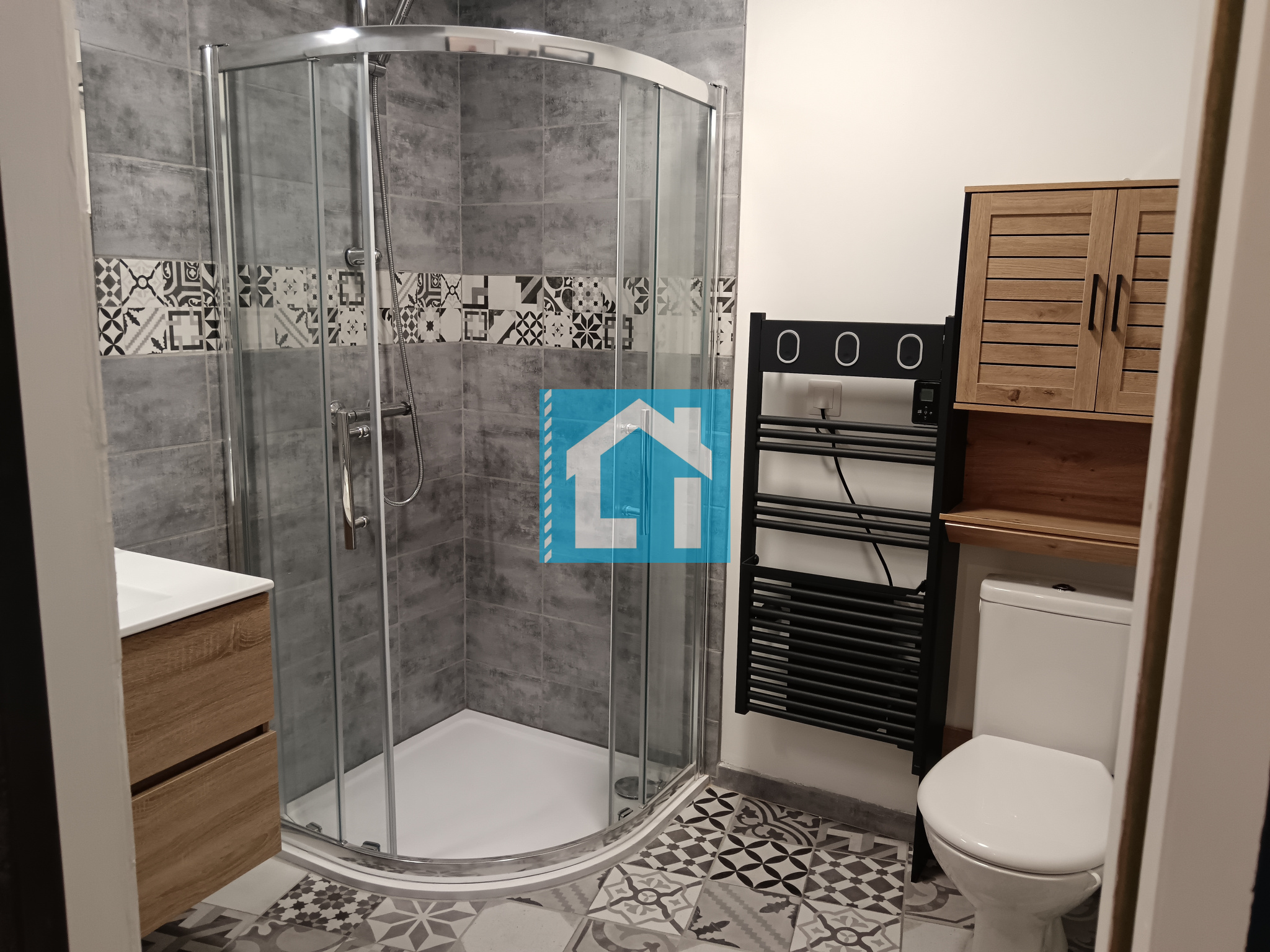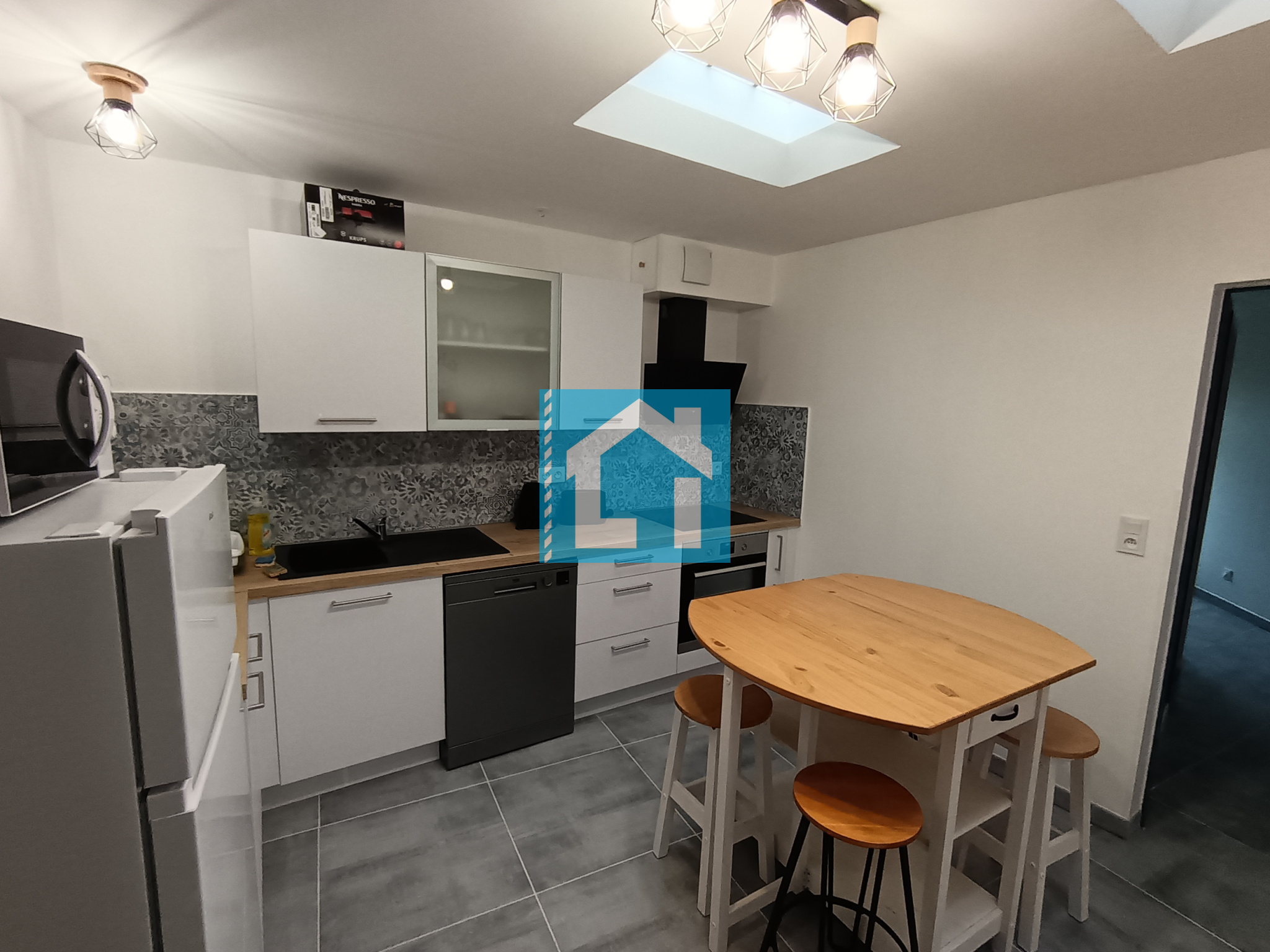 Au rez-de-chaussée, vous trouverez un salon lumineux de 22m², suivi d'une cuisine aménagée et équipée moderne et fonctionnelle ainsi qu'une première salle d'eau.