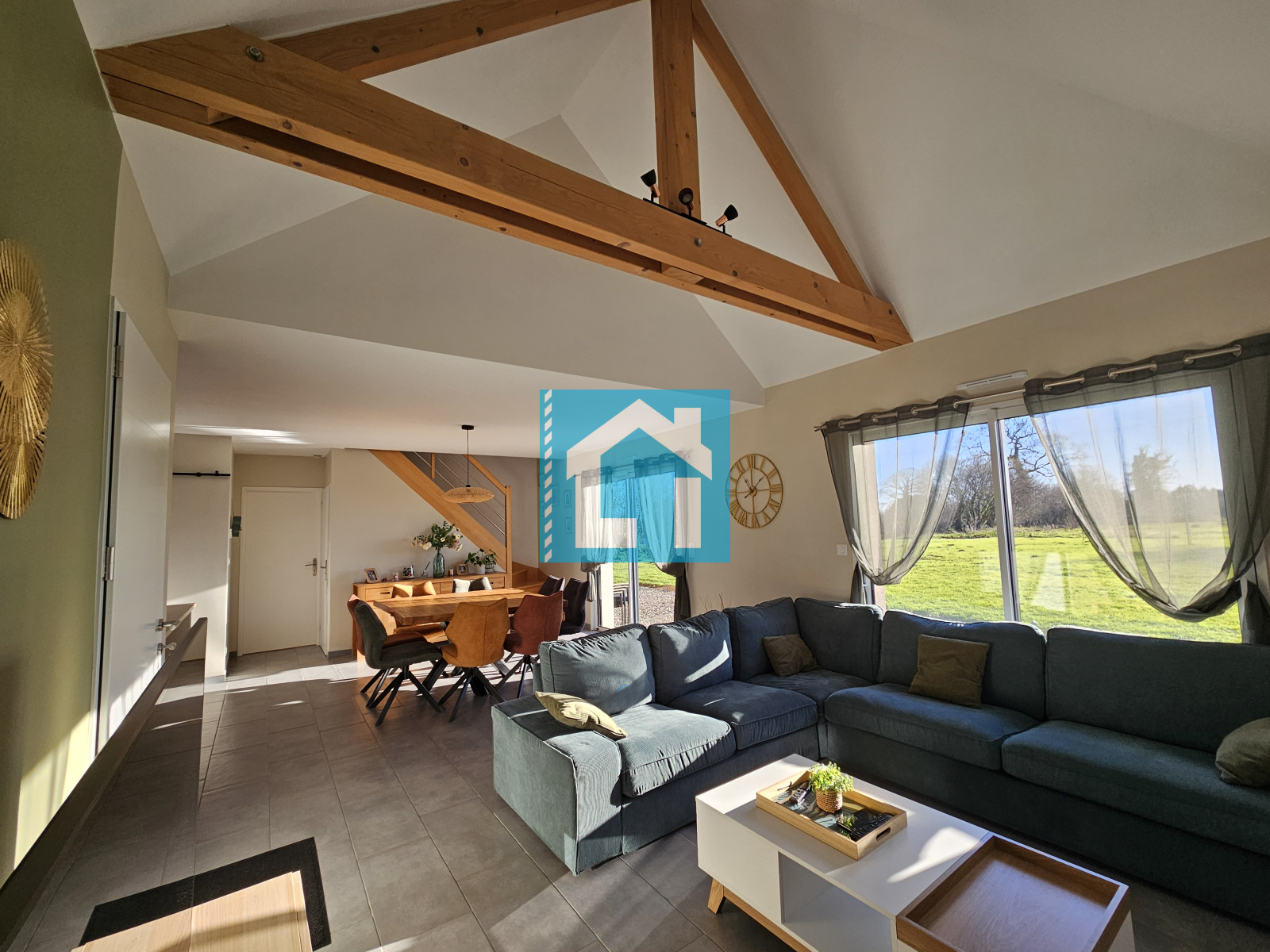 Située dans un environnement calme, venez découvrir cette superbe maison de 5 pièces (103 m² habitable, 113 m² au sol) achevée en 2020. Nichée sur une parcelle exceptionnelle de 8 661 m², cette propriété est un véritable havre de paix, idéal pour les amoureux de la nature, les projets de jardinage d'envergure ou les propriétaires d'animaux.