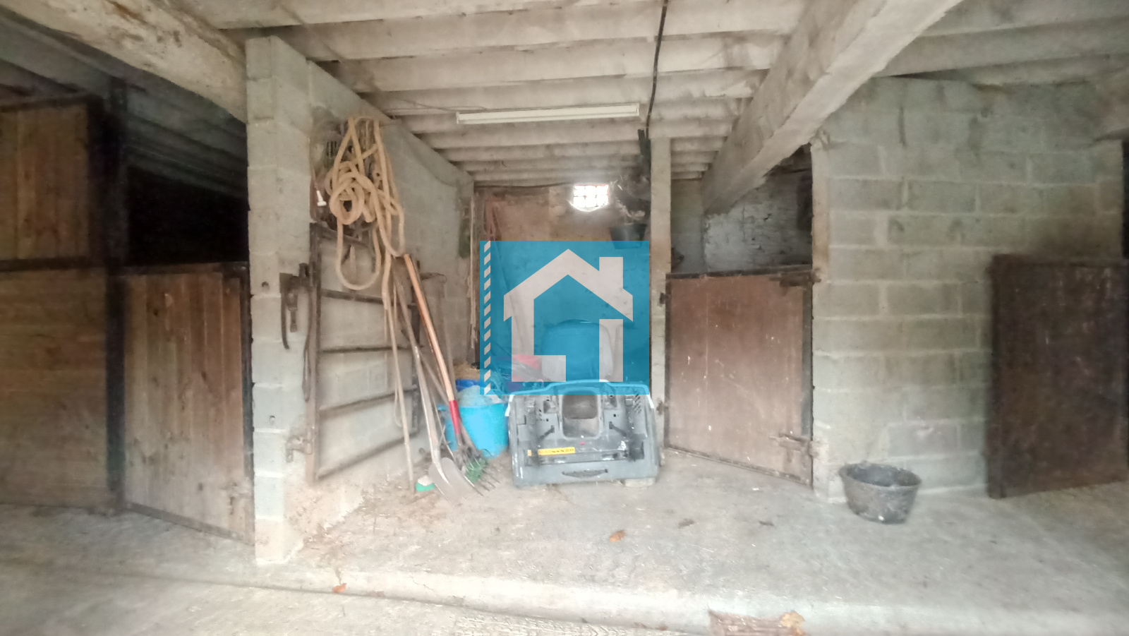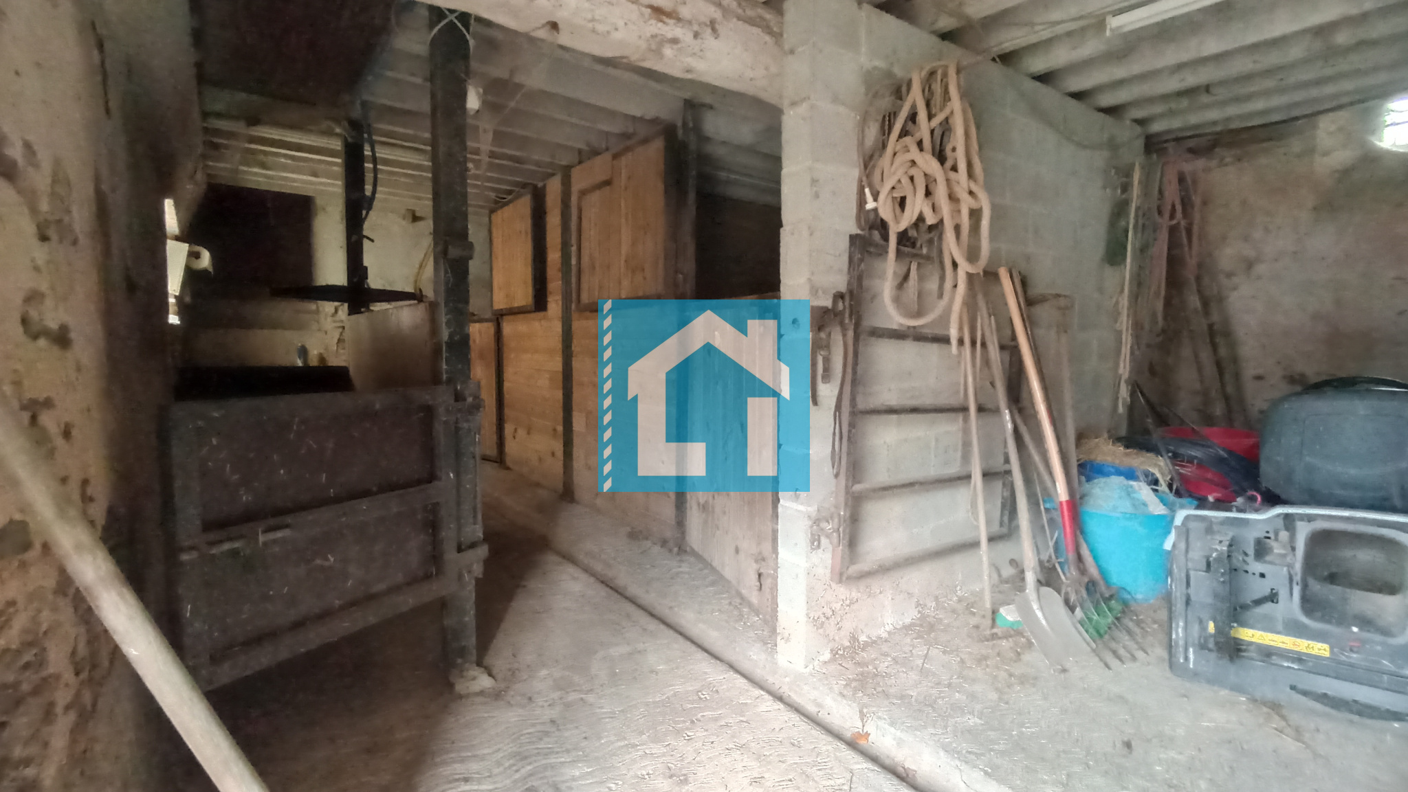 9 boxes (dont 1 boxe de poulinage) avec abreuvoir et mangeoire + 1 salle d'échographie + grenier total