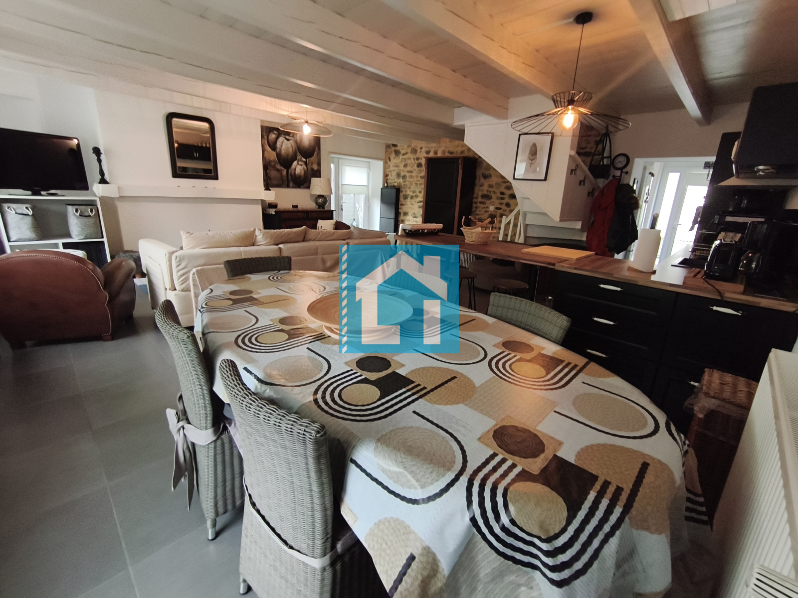 Nous vous proposons cette maison située à 6 min de la plage en voiture composée de :