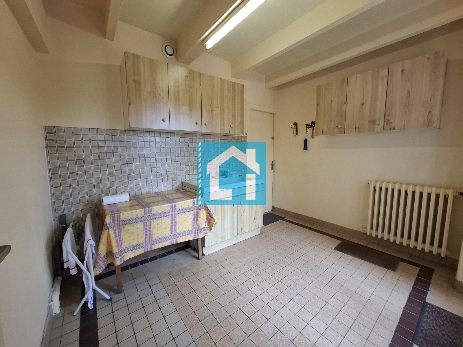 - au RDC, une entrée, un salon/séjour avec une belle cheminée en pierre, une cuisine aménagée, une arrière-cuisine, un bureau, une salle d'eau et un WC. Une buanderie, une cave, une chaufferie avec un accès à un étage disposant d'une chambre et un grenier aménageable. Garage et dépendances.