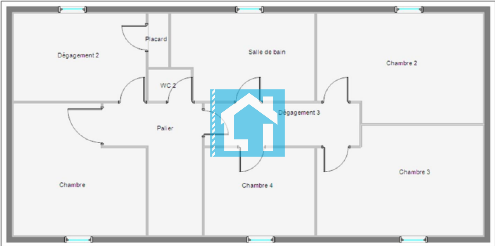 Au 1er étage : 4 chambres, un bureau avec accès au 2nd étage, une salle de bain, WC