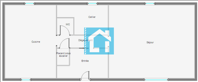 Au RDC : une entrée, une pièce de vie avec poêle à pellet, une cuisine, une buanderie, WC