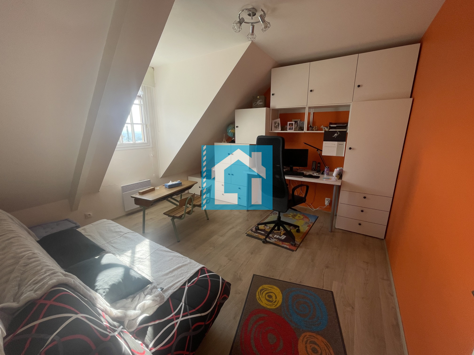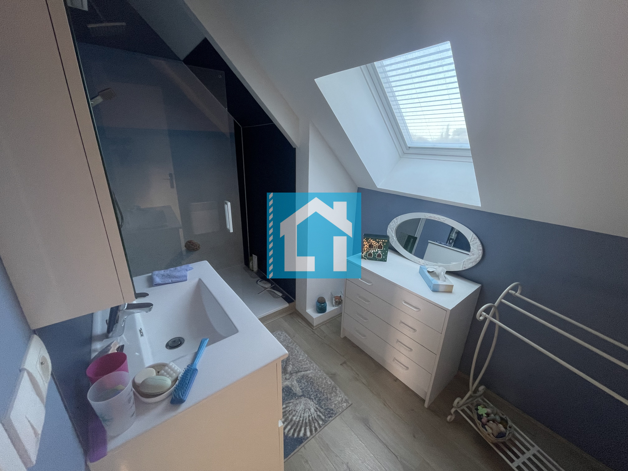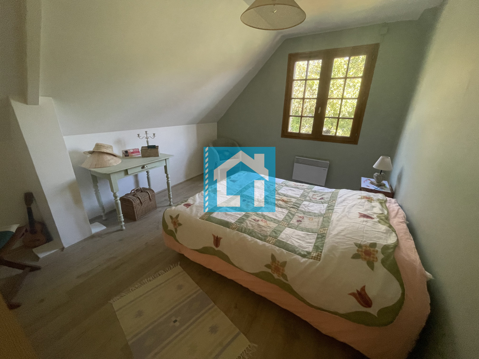 À l’étage, trois grandes chambres et une salle d’eau complètent l’espace nuit.