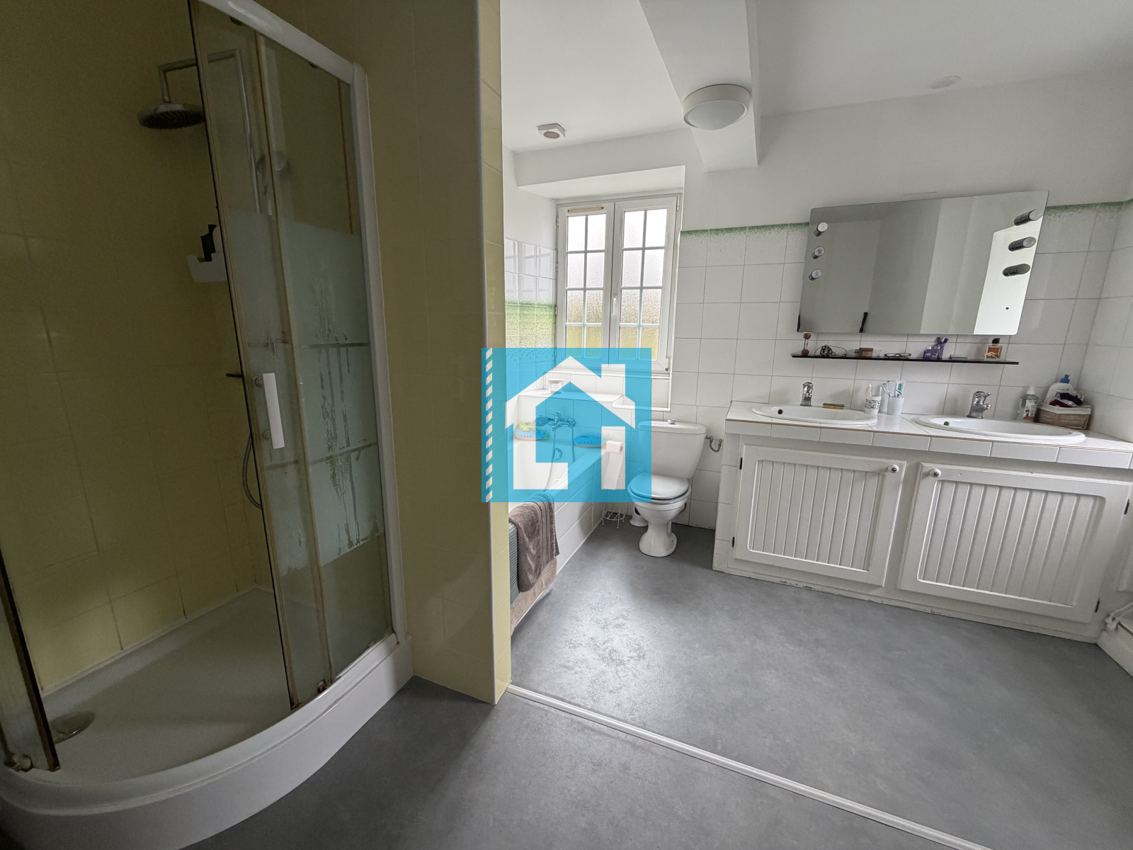 Au premier étage, vous trouverez une chambre avec un balcon équipé d'un petit salon, un bureau, une buanderie, ainsi q' une salle de bain sapcieuse avec baignoire et douche.