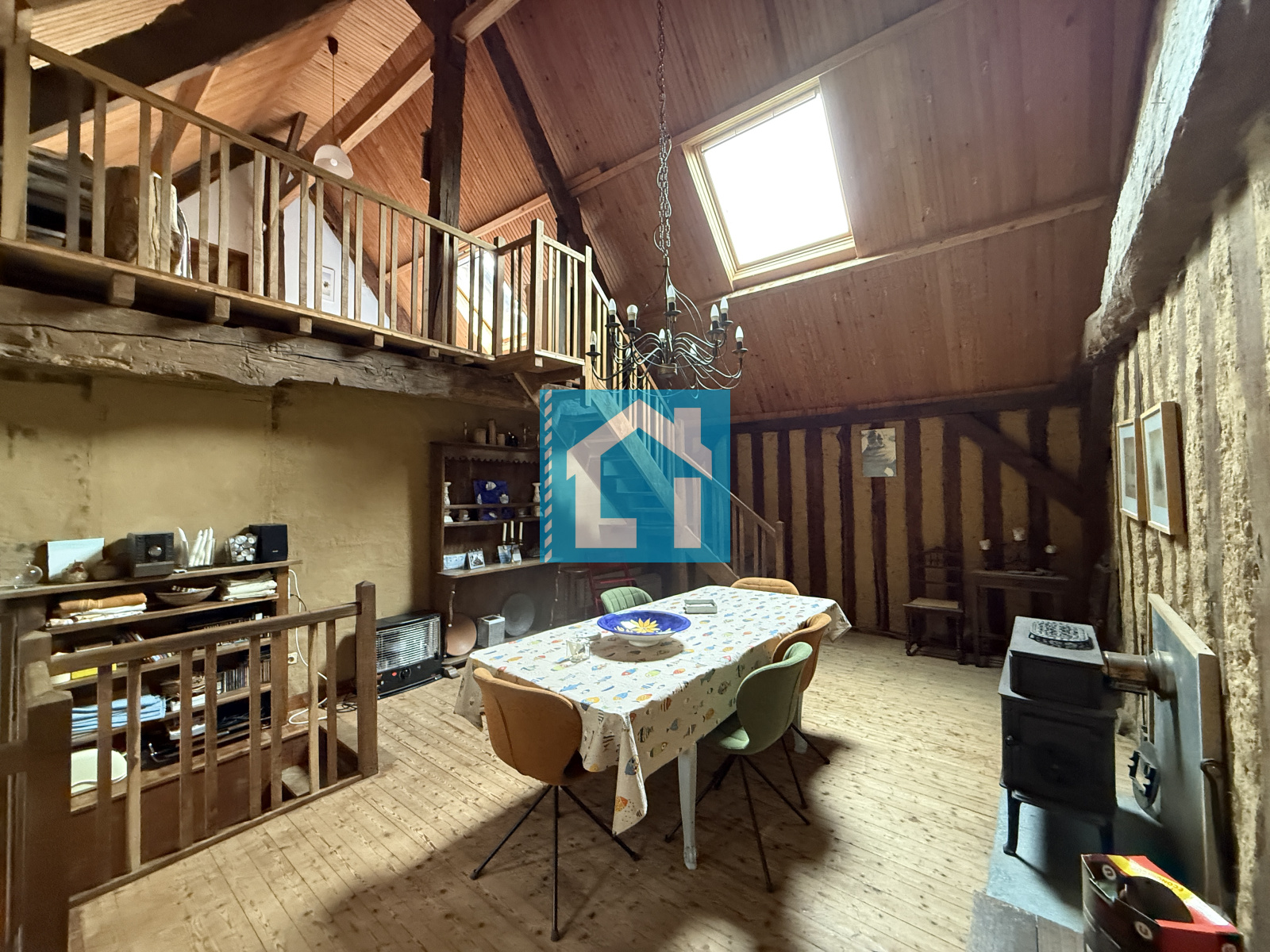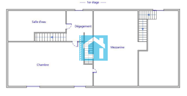 - À l'étage : un palier desservant une chambre et une salle d'eau avec WC ainsi qu'une mezzanine pouvant servir de chambre.