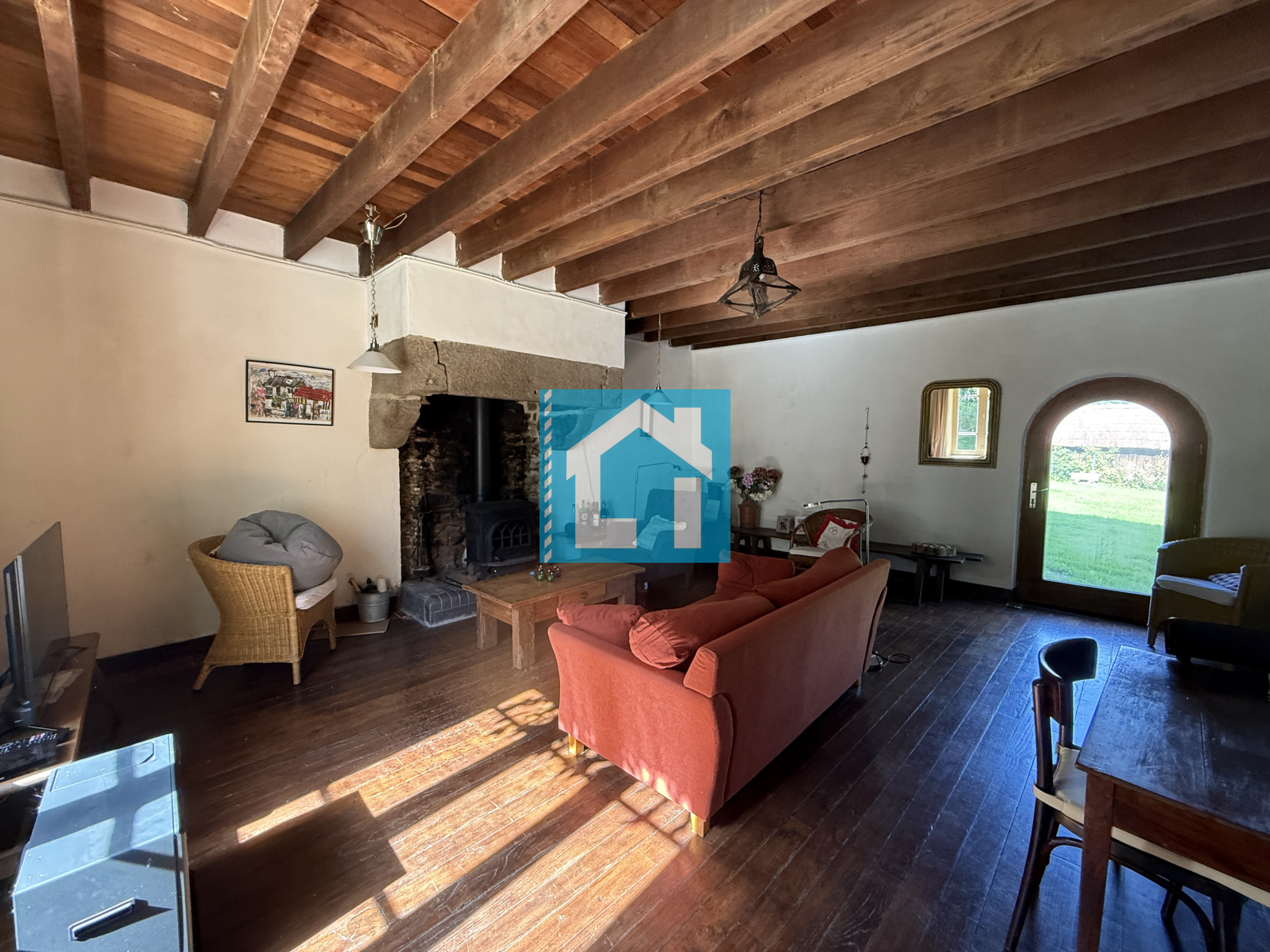 - Au rez-de-chaussée : d'une entrée, une cuisine aménagée, un séjour avec poêle à bois, une salle à manger, une salle de bain et un WC séparé,