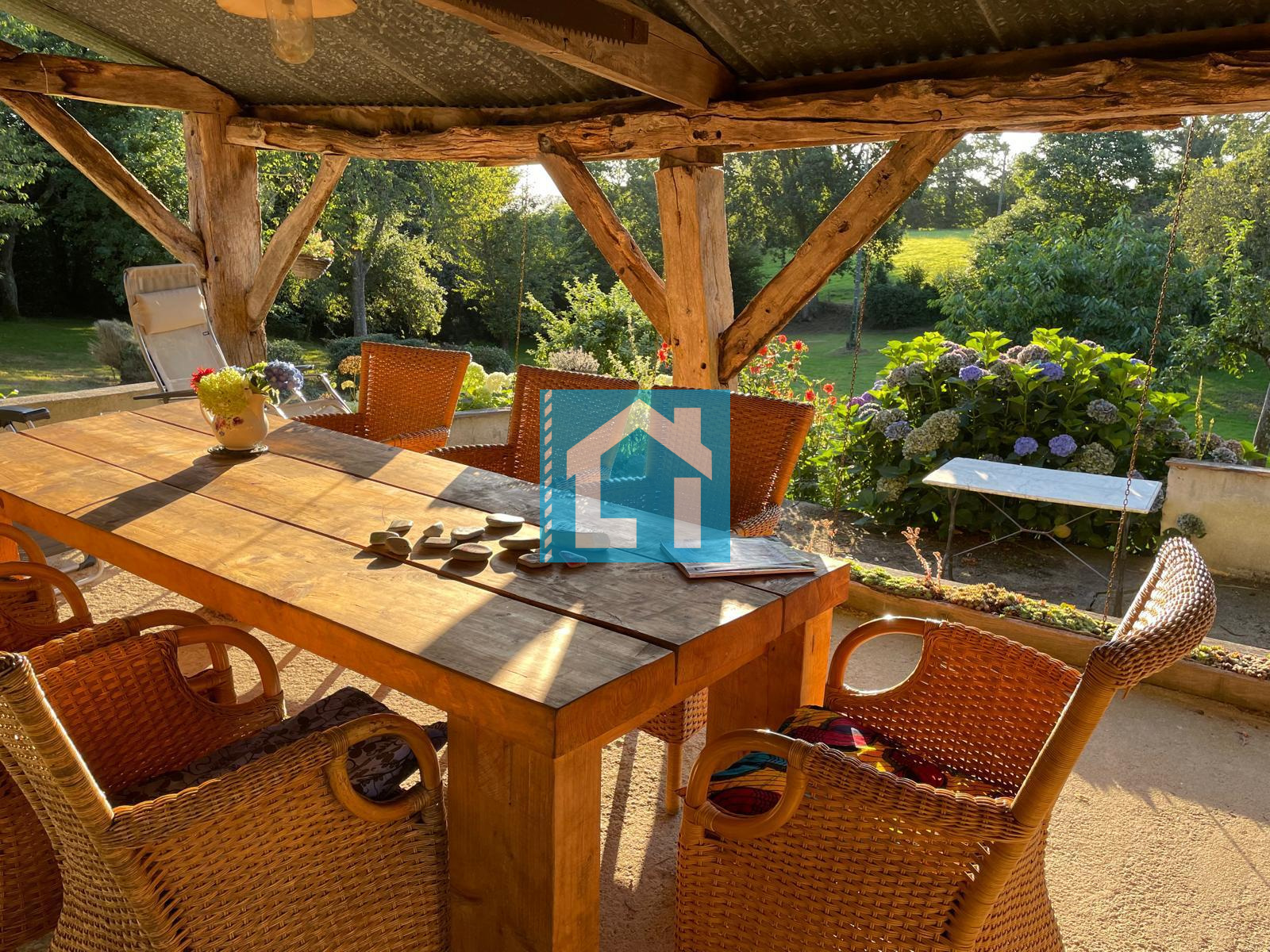 Le tout sur un généreux terrain arboré de 7 820 m² accueillant plusieurs dépendances dont une boulangerie, une ancienne maison, un hangar...