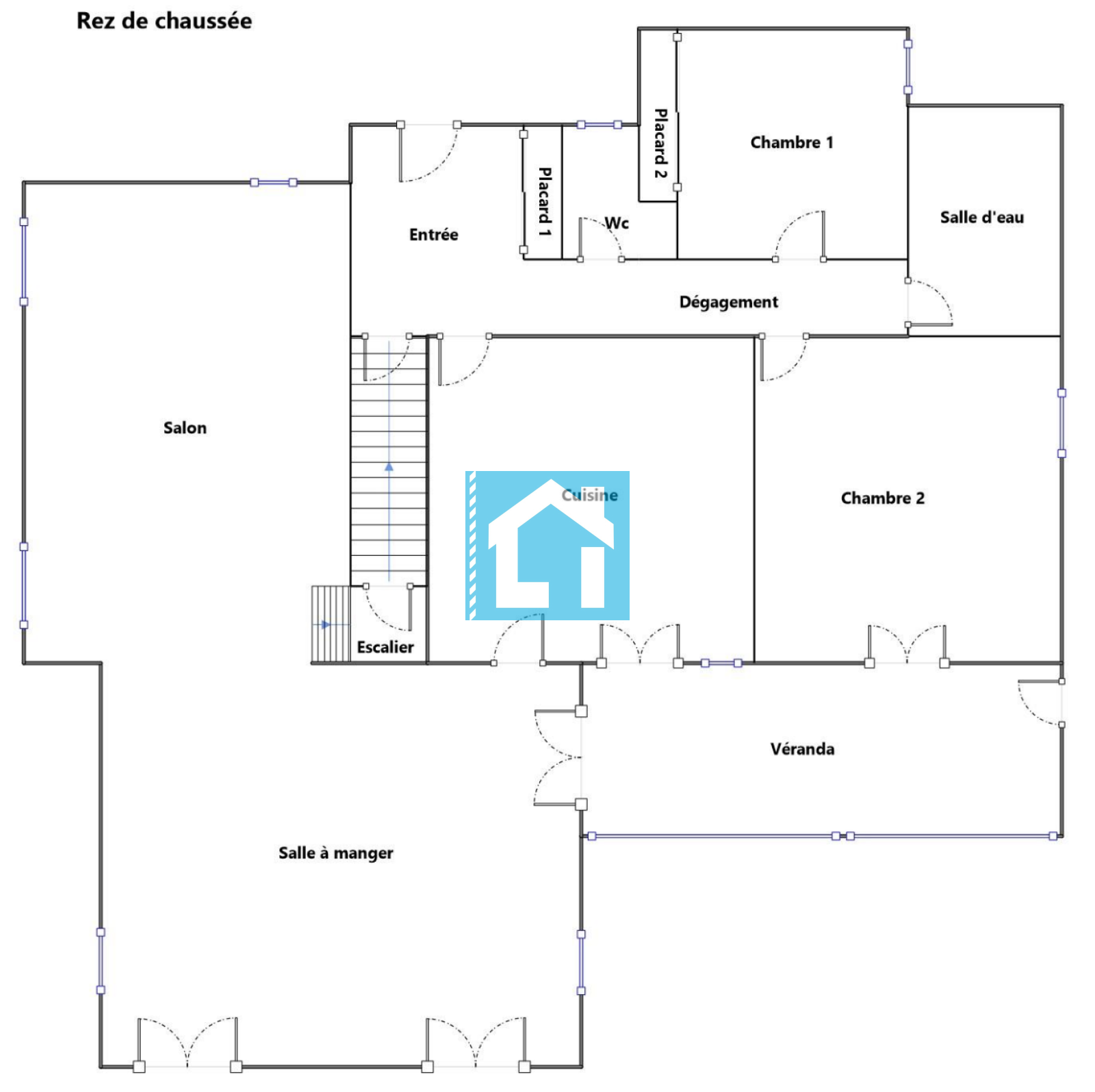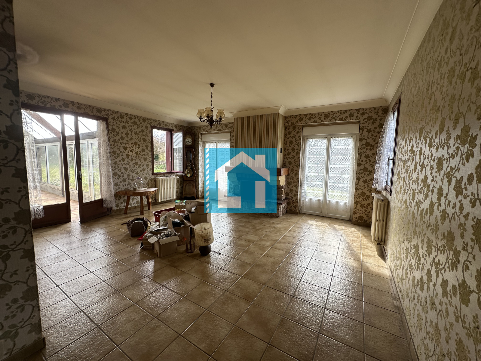- Au rez-de-chaussée : d'une entrée, un vaste séjour d'environ 50 m² avec cheminée, une cuisine avec insert, une véranda, et un couloir desservant deux chambres, une salle d'eau et un WC séparé avec lave mains,