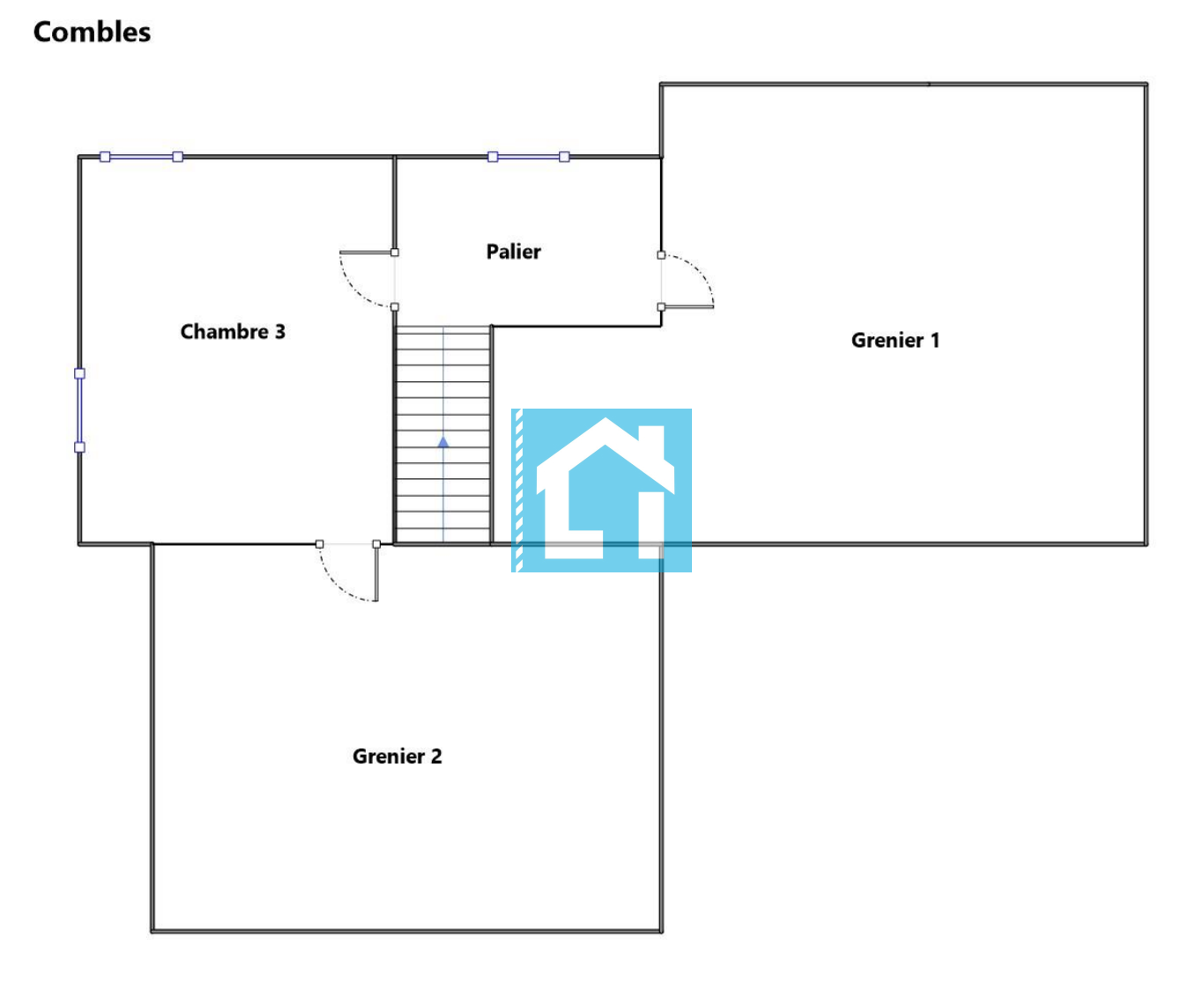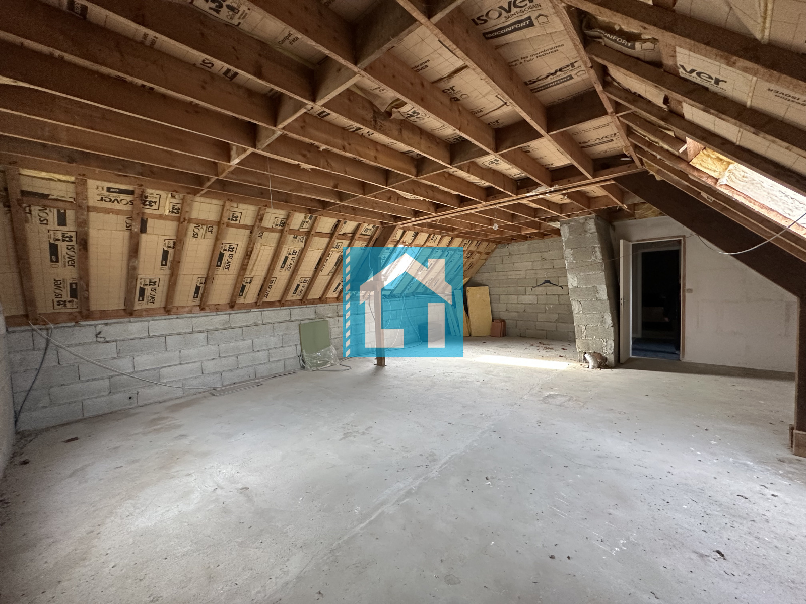 - À l'étage : un palier donnant sur un grenier aménageable d'environ 40 m² et une grande chambre d'environ 17 m² avec un second grenier aménagable en enfilade.