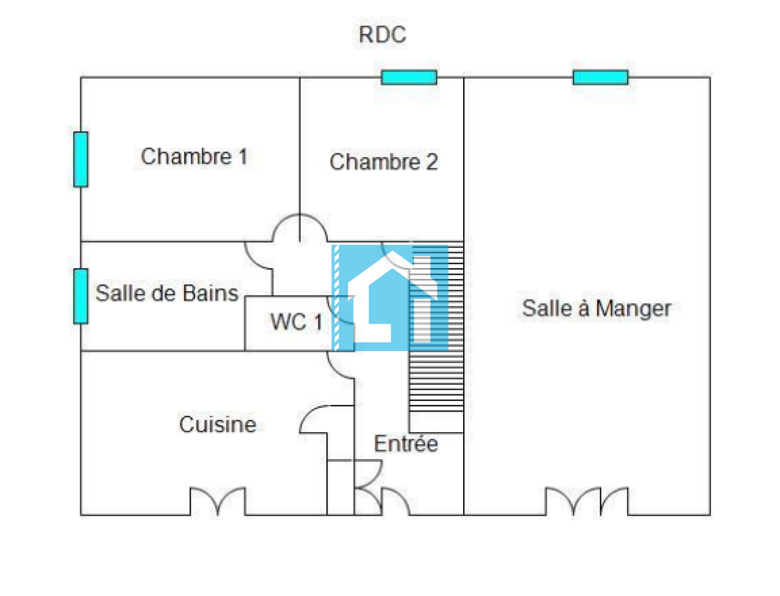 Vous trouverez au rez-de-chaussée un beau salon-séjour avec cheminée, une cuisine aménagée, deux chambres dont une avec placard ainsi qu'un WC séparé et une salle de bain.